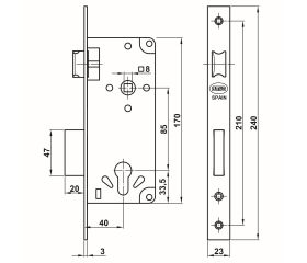 AMIG 22505 | Cerradura 4570 | 45/85 mm | Acero | Latonado barnizado
