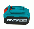 Batería intercambiable portátil y resistente, posee una potencia de 20 V y un amperaje máximo de 4 Ah de intensidad. Su componente principal es el litio, lo cual aumenta su vida útil y realiza un mayor número de cargas que otro tipo de baterías.