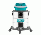 El aspirador en seco y húmedo a batería de TOTAL es una herramienta indispensable para los amantes del bricolaje más exigentes cuando se trata de tareas de limpieza en el taller o en el sótano. El depósito de acero inoxidable del aspirador en seco y húmedo ofrece una capacidad de 20 litros para la suciedad y los líquidos, y es resistente a la corrosión y de estructura sólida, para asegurar una larga vida útil. Una práctica conexión de soplado se integra a el aspirador en seco y húmedo para poder aspirar incluso las áreas de difícil acceso, como por ejemplo, las esquinas o los intersticios en el baño o la cocina. El sistema de manguera de 32 milímetros garantiza un alto caudal de aire y suciedad. Incluye además una manguera de succión de plástico y un tubo de extensión de tres piezas. También se incluye en el envío una bolsa para residuos. El aspirador en seco y húmedo de TOTAL se puede dirigir de manera fácil y conveniente mediante cuatro ruedas giratorias, así como un asa de transporte conectada a la carcasa, lo que también facilita su transporte.