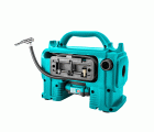 Compresor híbrido a batería 20 V. Incluye cargador 12 V para vehículos. Presión máxima de 160 Psi/11 Bar. Incluye adaptadores de inflado para neumáticos y balones. No incluye batería ni cargador.