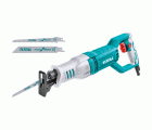 La sierra sable de TOTAL garantiza un corte preciso, ya sea en madera, plástico o metal. Sus potentes 750 vatios y la electrónica de velocidad de desplazamiento permiten trabajar de acuerdo con las aplicaciones y los materiales. Ello permite que el dispositivo se adapte de manera ideal a diferentes materiales, espesores y aplicaciones. La profundidad de corte en madera es de 115 mm, en aluminio 12 mm y en acero de 8 mm. Con el cambio de sierra ajustable sin herramientas, la hoja de la sierra se puede utilizar de forma óptima. El cambio de la hoja de sierra se realiza de forma rápida y sin herramientas. La sierra sable se puede sujetar cómodamente en la mano gracias a la amplia superficie de la empuñadura Softgrip, lo cual permite un trabajo cómodo y, sobre todo, seguro. Durante su concepción se prestó atención a un diseño ergonómico y delgado que permitiese un manejo sencillo. La entrega incluye una hoja de sierra para madera y una para metal.