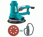 Lijadora de pared y hormigón de 750 W. Regulación de velocidad 1500-2700 rpm. Diámetro de 180 mm diámetro salida de polvo de 38 mm. Incluye 8 discos de lijado y bolsa para polvo.