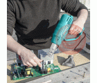 Esta herramienta ofrece una forma de trabajo más sencilla gracias a su mango ergonómico para un manejo cómodo. Además, alcanza una temperatura del aire expulsado de 350-500 ºC y tiene un peso ligero de 1,16 kg para favorecer su uso continuado.