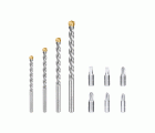 Juego de 10 brocas variadas. 6 brocas de metal HSS con medidas 2 - 3 - 3,5 - 4 - 5 - 6 mm. 4 brocas de pared medidas 4 - 5 - 6 - 8 mm. 6 puntas de atornillar. 2 puntas planas: SL4 - SL5. 2 puntas Phillips: PH1 - PH2. 2 puntas Pozidrive: PZ1 - PZ2.