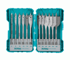 Juego de 12 brocas de pala para madera. Medidas: 6 - 8 -10 -12 -14 -16 - 18 - 20 -25 - 28 - 30 - 32 mm. Mango hexagonal 1/4''.