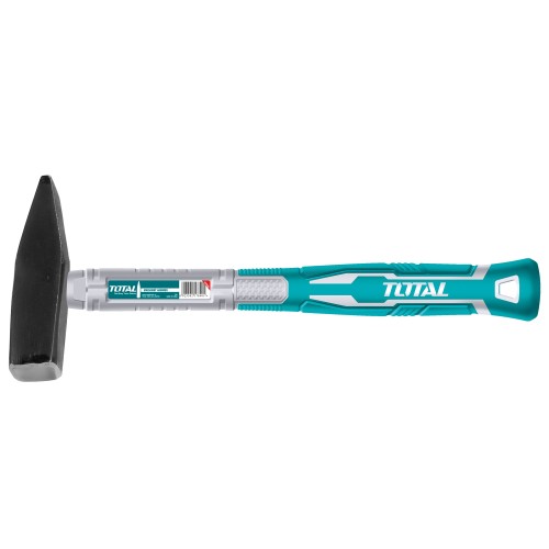 El martillo mecánico Total Tools, con un peso de 200 gr, es una herramienta profesional diseñada para trabajos de mecánica general. Su cabeza de acero al carbono forjado cuenta con una superficie de trabajo templada de alta dureza, ofreciendo resistencia y durabilidad. Esta herramienta es ideal para fijar clavos en la madera o introducir tacos en la pared. El mango ergonómico está fabricado en fibra bi-material, proporcionando un agarre cómodo y seguro. La fijación del mango mediante resina asegura una conexión robusta y duradera. Gracias a su peso moderado y bordes redondeados, este martillo permite un uso continuado sin causar fatiga, facilitando una forma de trabajo más sencilla y eficiente.