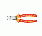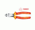 Alicate aislado de corte reforzado de 180 mm. Fabricado en Cr-V. Mango bimaterial con certificado VDE que soporta hasta 1000 V en corriente alterna y 1500 V en corriente continua.
