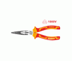 Alicate aislado de punta plana. Fabricado en Cr-V. Mango bimaterial con certificado VDE que soporta hasta 1000 V en corriente alterna y 1500 V en corriente continua.