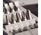 - 5 puntas planas: SL3 - SL4 - SL5 - SL6 - SL6. 5 puntas Phillips: PH0 - PH1 - PH2 - PH2 - PH3. 2 puntas Pozidrive: PZ1 - PZ2. 5 puntas Torx: T10 - T15 - T20 - T25 - T30. 3 puntas Hexagonales: HEX3 - HEX4 - HEX5. 1 adaptador 25 mm. 9 casquillos de 1/4” x 20,5 mm: 4 - 5 - 6 - 7 - 8 - 9 - 10 - 11 y 12 mm. 1 soporte para puntas de 4 x 60 mm. 1 portapuntas de 6,35 x 50 mm.