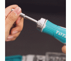 El destornillador con un juego de 33 piezas y vasos, modelo TACSD30336 de TOTAL es perfecto para una amplia variedad de aplicaciones. El mango cuenta con una función carraca para facilitar el uso. Este set incluye 5 puntas planas (SL3, SL4, SL5, SL6, SL6), 5 puntas Phillips (PH0, PH1, PH2, PH2, PH3), 2 puntas Pozidrive (PZ1, PZ2), 5 puntas Torx (T10, T15, T20, T25, T30) y 3 puntas hexagonales (HEX3, HEX4, HEX5). Además, incluye 1 adaptador de 25 mm, 9 casquillos de 1/4'' x 20,5 mm en las medidas de 4, 5, 6, 7, 8, 9, 10, 11 y 12 mm, un soporte para puntas de 4 x 60 mm y un portapuntas de 6,35 x 50 mm. Fabricado en cromo vanadio (Cr-V) para asegurar durabilidad y resistencia, este destornillador es perfecto para trabajos de ajuste y montaje, proporcionando una solución práctica y organizada para todas tus necesidades de herramientas.