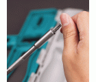 - El estuche incluye un destonillador tipo carraca con mango bimaterial antideslizante, 1 adaptador, 1 portapuntas, 1 soporte para puntas, 20 puntas y 9 vasos. Todos organizados para facilitar su almacenamiento y transporte.