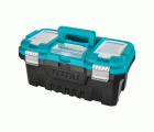 Caja de herramientas de plástico. Cierre metálico. Contiene 2 compartimentos de almacenamiento. Contiene bandeja separada de plástico.