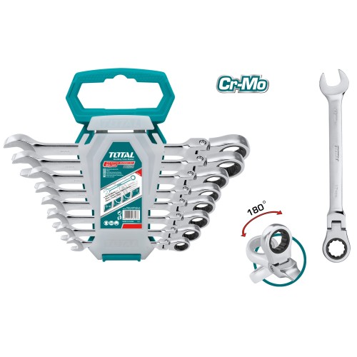 TOTAL 40473 | Juego 8 llaves combinadas carraca articulada THT102RK586 | Cromo molibdemo (Cr-Mo)