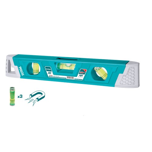 - Al realizar labores de reforma y mantenimiento, es esencial tener las herramientas adecuadas. El nivel magnético de Total Tools, te permite realizar un nivelado en superficies metálicas manteniendo las manos libres.