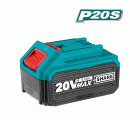 - Para amoldarse a tus necesidades, esta batería portátil es válida para acoplarse a cualquier herramienta de la gama P20S de la marca TOTAL TOOLS que funcione mediante baterías de 20 V de potencia.