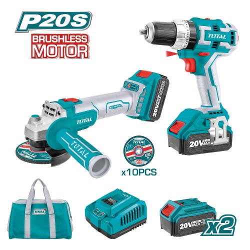 TOTAL 40887 | Pack atornillador + amoladora a batería TCKLI6015 | 20 V