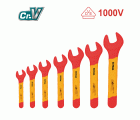 Juego de 7 llaves fijas aisladas. Medidas de 8-10-12-13-14-17-19 mm. Certificado VDE que permite trabajos hasta 1000 V.