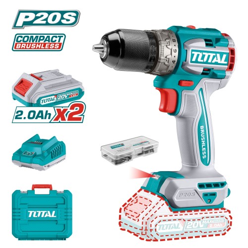 TOTAL 41238 | Taladro atornillador brushless a batería TDLI20602 | 20 V