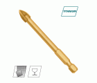 Broca para azulejo y vidrio. Punta de titanio. Vástago hexagonal de 1/4''. Especiales para taladrar porcelánico, granito y mármol.