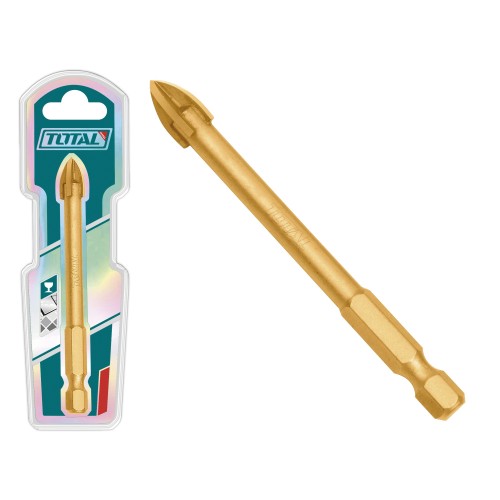 Broca para azulejo y vidrio. Punta de titanio. Vástago hexagonal de 1/4''. Especiales para taladrar porcelánico, granito y mármol.