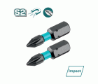 Juego de 2 puntas de impacto de tipo PH2. Superficie negra y punta magnética.