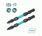 Juego de 2 puntas de impacto de tipo PH2 SL6. Superficie negra y punta magnética.
