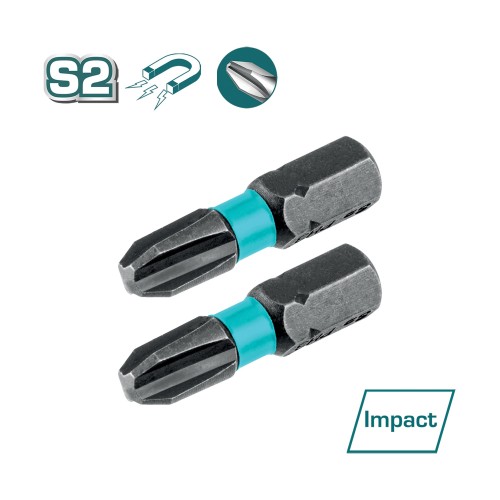 Juego de 2 puntas de impacto de tipo PH3. Superficie negra y punta magnética.