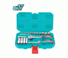 Maletín de vasos de 1/4'' y accesorios. Incluye llave carraca de 45 dientes. 13 vasos de medidas de 4, 4.5, 5, 5.5, 6, 7, 8, 9, 10, 11, 12, 13 y 14 mm. Barra extensora. Accesorio destornillador manual. 4 vasos largos de 8, 10, 12 y 13 mm.