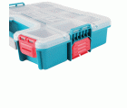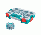 La caja organizadora apilable TPBX1121 está diseñada para mantener el orden en el espacio de trabajo, almacenando y clasificando pequeñas piezas y accesorios. Con medidas de 305 x 230 x 65 mm, esta caja resistente facilita la organización gracias a sus 10 compartimentos modulares y una tapa transparente que permite una visualización clara del contenido sin necesidad de abrirlo. Incorpora un asa ergonómica y cierres seguros que facilitan su transporte y uso diario. Su diseño apilable maximiza el espacio de almacenamiento, haciéndola perfecta para talleres, garajes y proyectos de bricolaje.