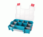 Caja de plástico organizadora. Separadores desmontables. Medidas de 305 x 230 x 65 mm.