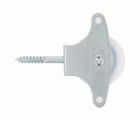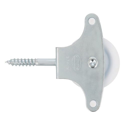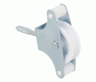 Polea de acero con roldana de plástico de Ø 39 mm. Incluye tirafondo de sujeción y guías. Para tendederos de ropa.