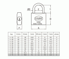 Candado fabricado en latón macizo con arco tratado de acero para una mayor resistencia a la cizalla y al apalancamiento. Doble cierre. Componentes interiores resistentes a la corrosión. Incluye 2 llaves.