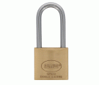 Candado fabricado en latón macizo con arco largo tratado de acero para una mayor resistencia a la cizalla y al apalancamiento. Doble cierre. Componentes interiores resistentes a la corrosión. Combinaciones con bombillos iguales. Incluye 2 llaves.