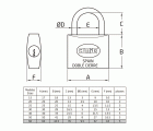 Candado fabricado en latón macizo con arco tratado de acero para una mayor resistencia a la cizalla y al apalancamiento. Doble cierre. Componentes interiores resistentes a la corrosión. Combinaciones con bombillos iguales. Incluye 2 llaves.