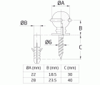 Sus medidas son: diámetro de 22 x 31 mm de alto. Ha sido elaborado con Acero Inoxidable 18/8, un material que destaca por su dureza, resistencia a la tracción y larga vida útil. Cuenta con acabado en plateado mate. Incluye tornillería necesaria.