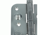 Bisagra de seguridad con canto redondo de 15 mm de radio para puertas de entrada con remates. Fácil instalación.