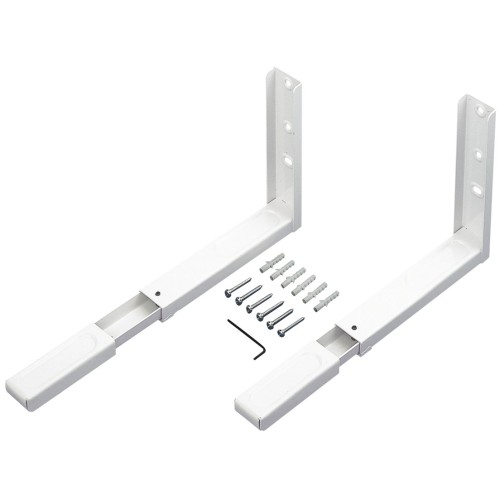 Soportes de pared para microondas fabricados en acero de alta calidad lacados en blanco. Longitud ajustable para mayor flexibilidad. Se puede extender desde 360 hasta 450 mm para adaptarse a la mayoría de los modelos de microondas. Capacidad de carga de hasta 40 kg.