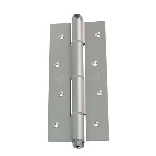 Bisagra de simple acción en canto cuadrado fabricada en aluminio de alta calidad. Regulación de la potencia de cierre. Gran resistencia a la torsión. Muelle de acero elástico flexible. Accesorios incluidos.