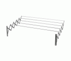 Tendedero extensible. Cuerpo y barras en aluminio inoxidable. Tornillos de sujeción de barras en acero inoxidable. Incluye accesorios de montaje y fijación.