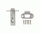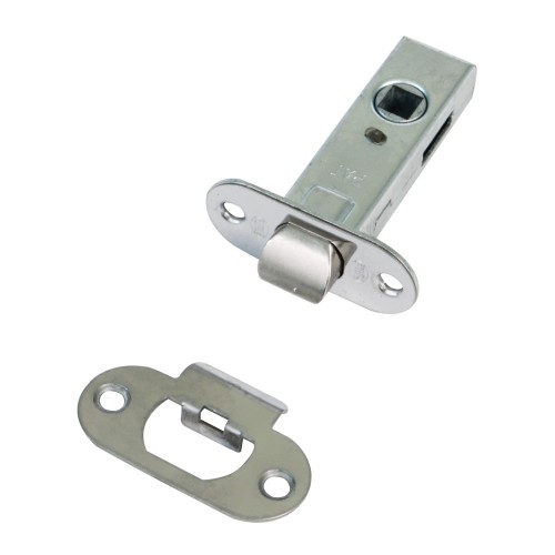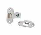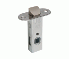 Picaporte de embutir de entrada 45 mm con frente redondo y soporte con cantos redondeados. Para manillas con cuadradillo de 8 mm en puertas de madera de paso.