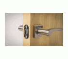 Picaporte de embutir. Frente redondo y soporte con cantos redondeados con film protector. Para manillas con cuadradillo de 8 mm en puertas de madera de paso.