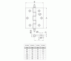 Bisagra fija. Perfil laminado de latón. Canto cuadrado, con remate. Pasador de latón y con arandelas.