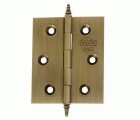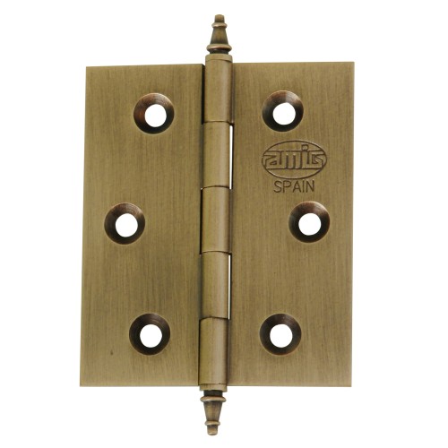 Bisagra fija de perfil laminado de latón en canto cuadrado con remate. Fácil instalación.