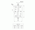 Bisagra desmontable de acero. Con canto redondo y remate. Radio: 10 mm.
