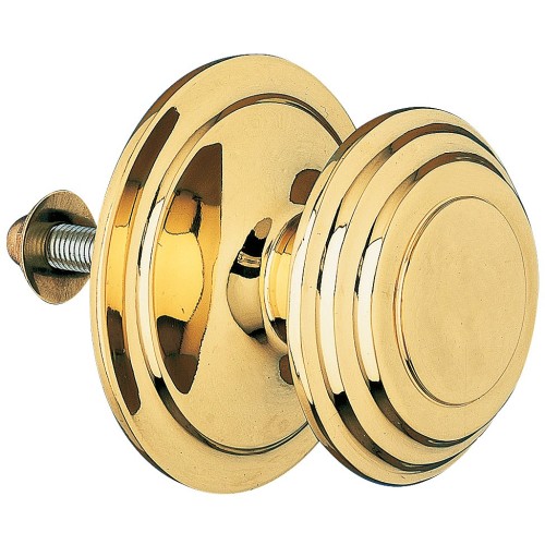 Pomo fabricado en latón macizo con acabado pulido, lo que le aporta una estética clásica y elegante. Apto para puertas con un grosor máximo de 70 mm. Incluye tornillo roscado de fijación y tuerca posterior para una instalación segura.