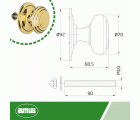 Medidas - Pomo Ø76 mm, Base Ø92 mm, Altura 63,5 mm. Acabado: Pulido. Incluye tuerca posterior de fijación M10x1.5 mm con la que podrás instalarlo de forma rápida y sencilla. De latón, un material muy utilizado en ferretería, por su larga vida útil y por ser muy resistente al frotamiento, al óxido y la corrosión.