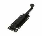 Pasador de sobreponer en acero con eje de zamak para puertas de paso. Muy decorativo y de color negro, de cuidado diseño estilo forja perfecto para puertas y portones de estilo rústico.