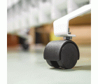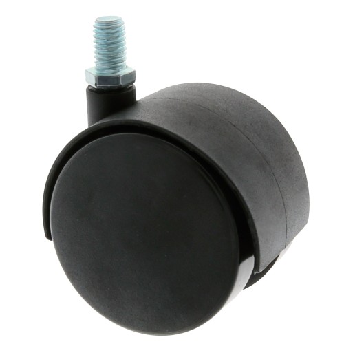 Rueda de nylón con espiga roscada. Buen coeficiente de rozamiento. Ruedas con diferentes aplicaciones, utilizadas para el transporte de cargas ligeras como mobiliario ligero, expositores, carros, percheros, camas nido, muebles de oficina, etc...