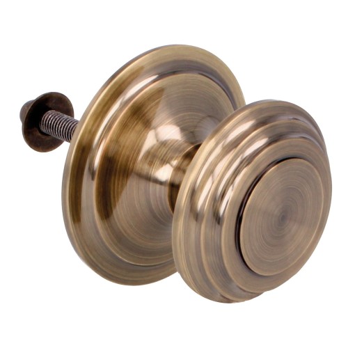 Pomo fabricado en latón macizo con acabado pulido, lo que le aporta una estética clásica y elegante. Apto para puertas con un grosor máximo de 70 mm. Incluye tornillo roscado de fijación y tuerca posterior para una instalación segura.
