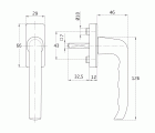 Manilla para ventanas con sistema europeo de cremonas. Con cuadradillo de 7 mm y tetones de 10 mm. Tornillo para manillas M5 x 40 mm cod: 3402.